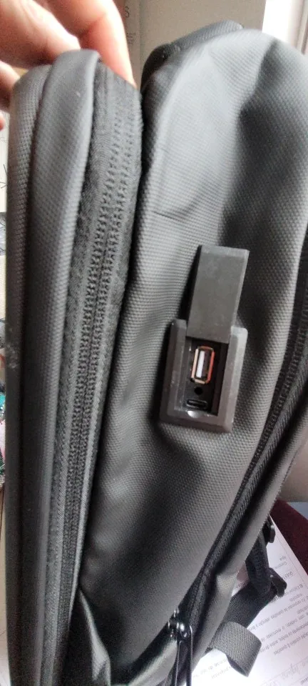 The USB Charging port will allow you to keep your devices charged on the go. There is also a three-dimensional EVA material and zipper that makes this backpack truly unique. **Power bank not included**